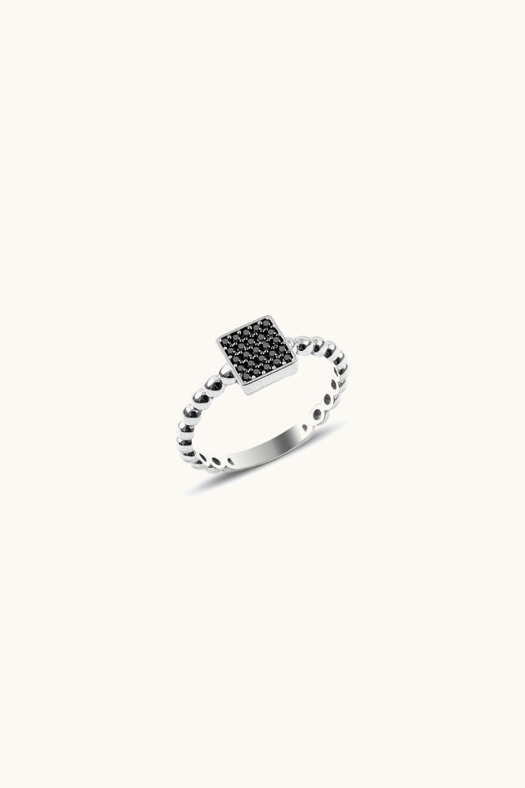 Anillo cuadrado con circonitas negras R88428