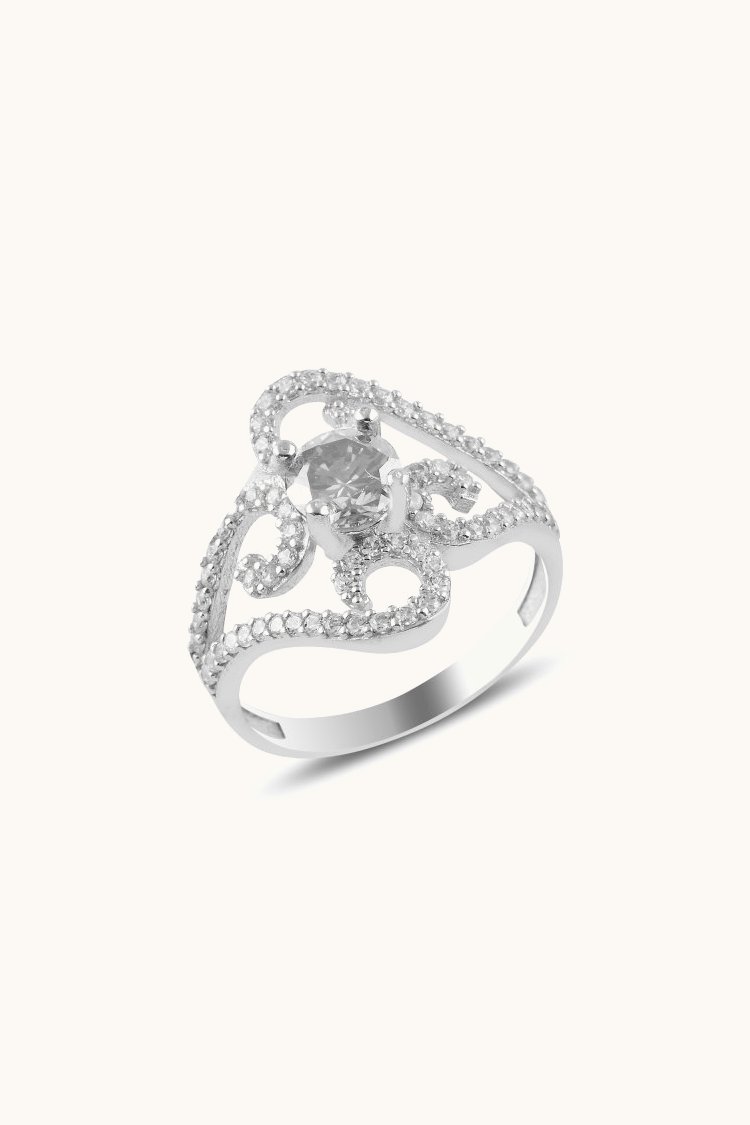 anillo de circonitas cúbica y circón de 5mmen el centro R97632