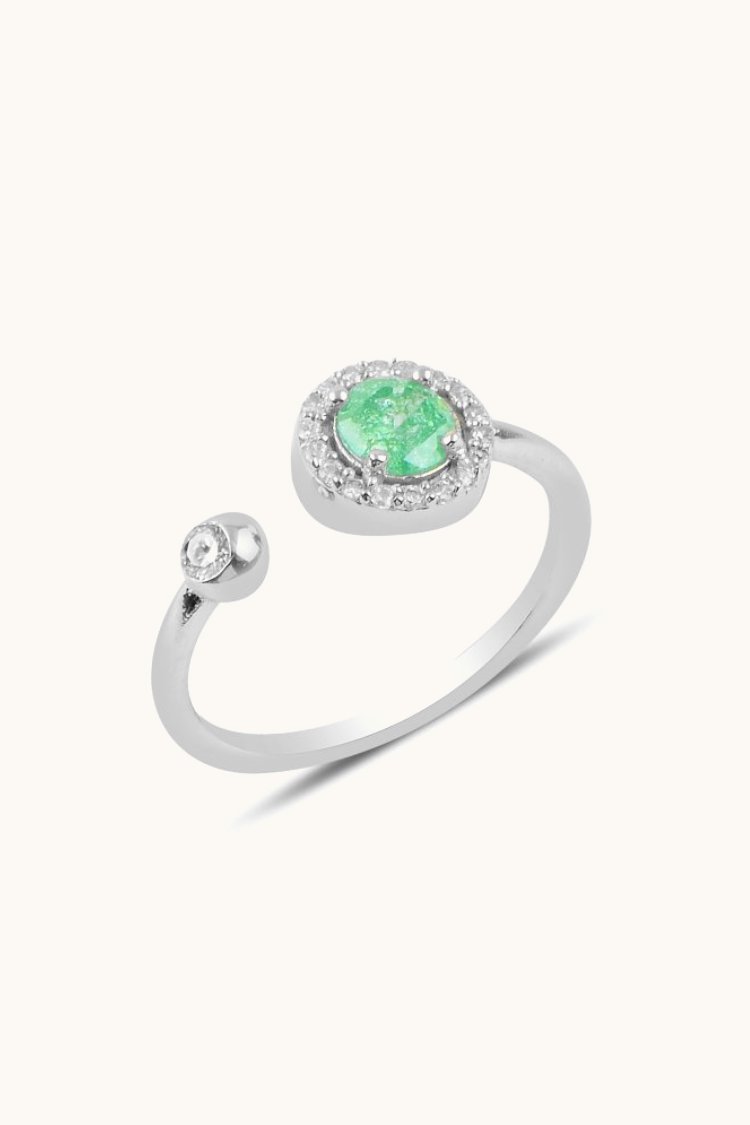 Anillo de tamaño ajustable con halo de circonitas cúbica y solitario R92983
