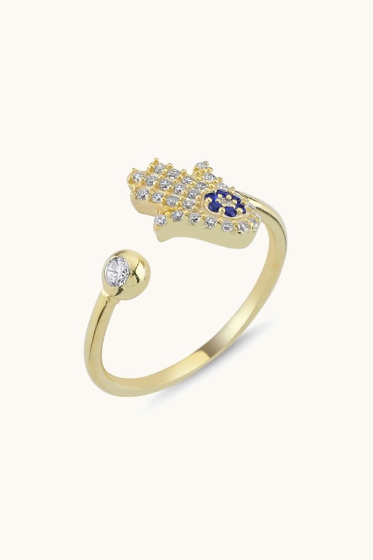 Anillo de tamaño ajustable Hamsa Evil Eye CZ R86242