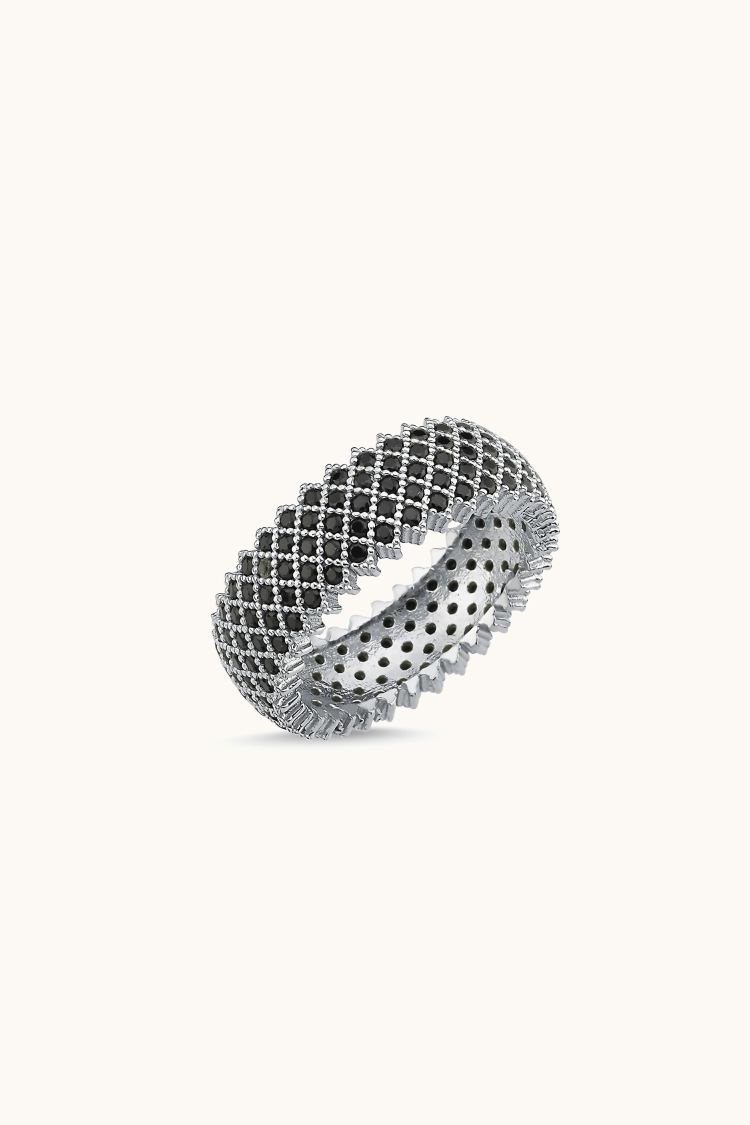 Anillo eternidad de 5 lineas con circonitas negras cantidad