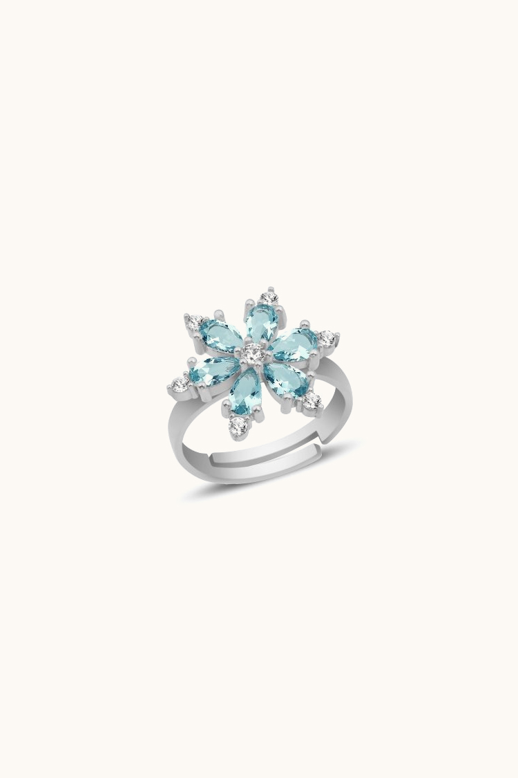 Anillo flor de lotto aguamarina con circonitas cantidad