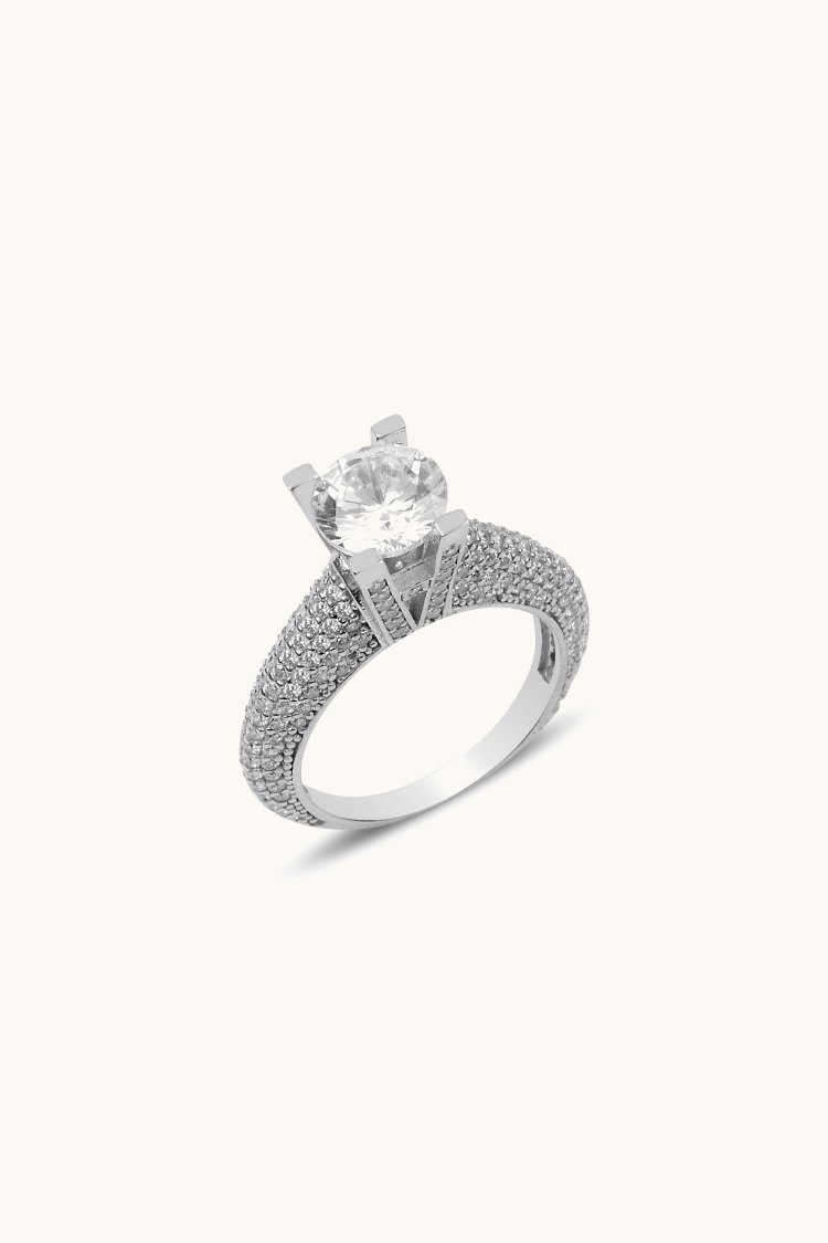 Anillo solitario con circonitas y un circón en centro R90014