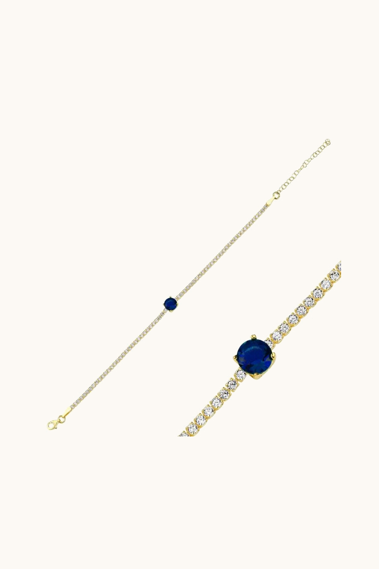 Pulsera de tennis con circonitas y circón azul en el medio
