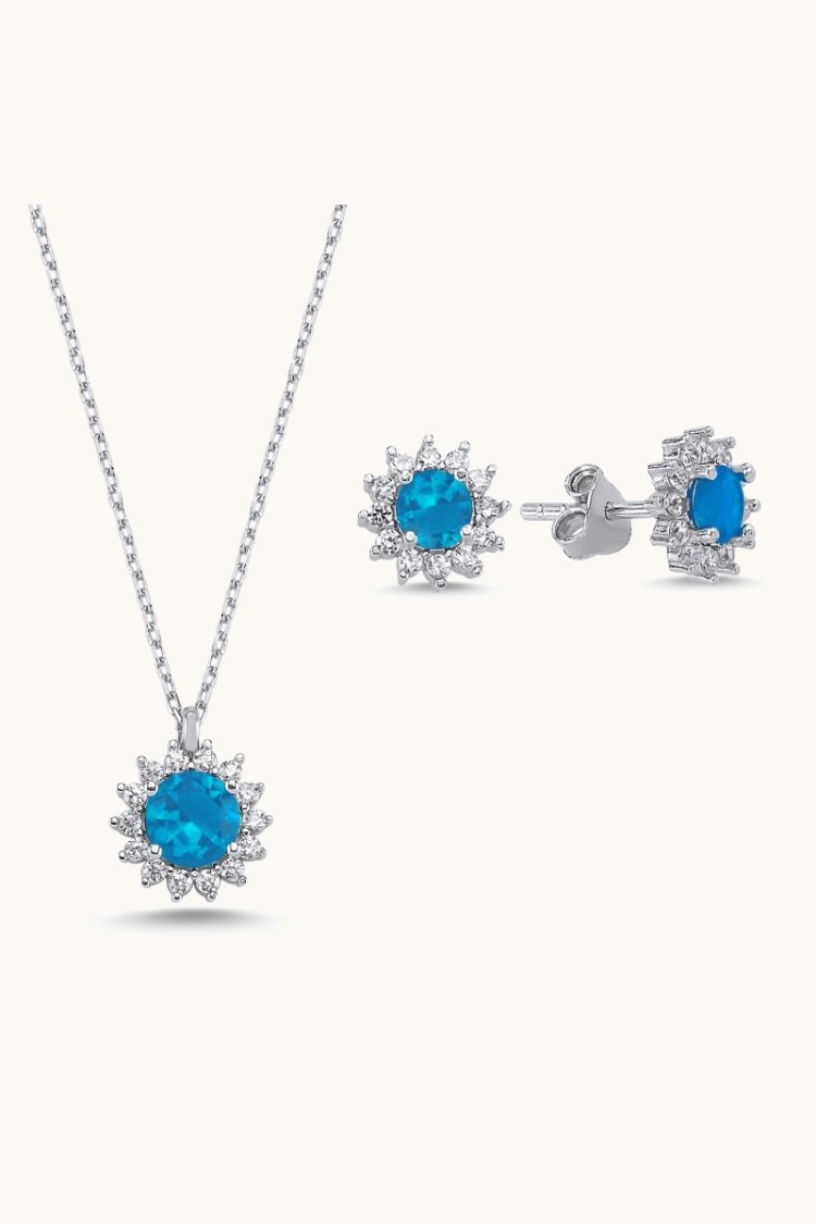 Juego de circonitas de color azul claro con solitario aureola S102427