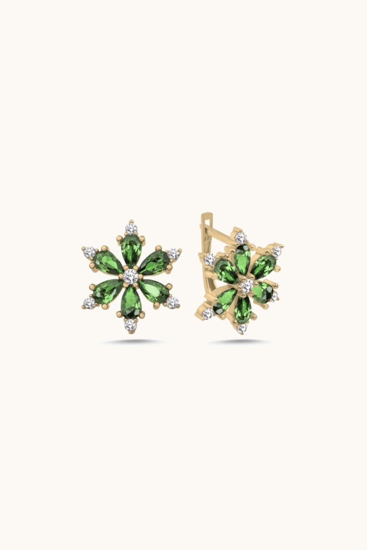 Pendientes con cierre trasero y circonita esmeralda y flor de loto E102542