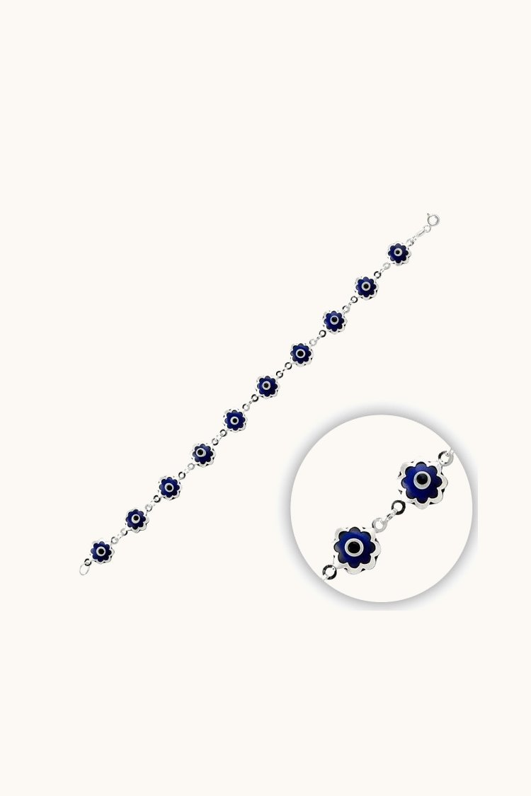 Pulsera de cristal hecha a mano con flores de mal de ojo B14416